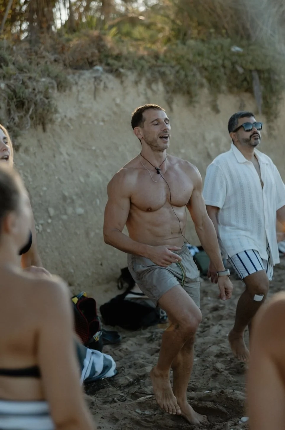 Morning and afternoon sessions alternate between embodied fitness with Alex, voice and expression workshops with Yorgos, and integrative practices combining both disciplines. Group exercises, theatrical games, and mindful movement deepen connection, presence, and physical awareness.