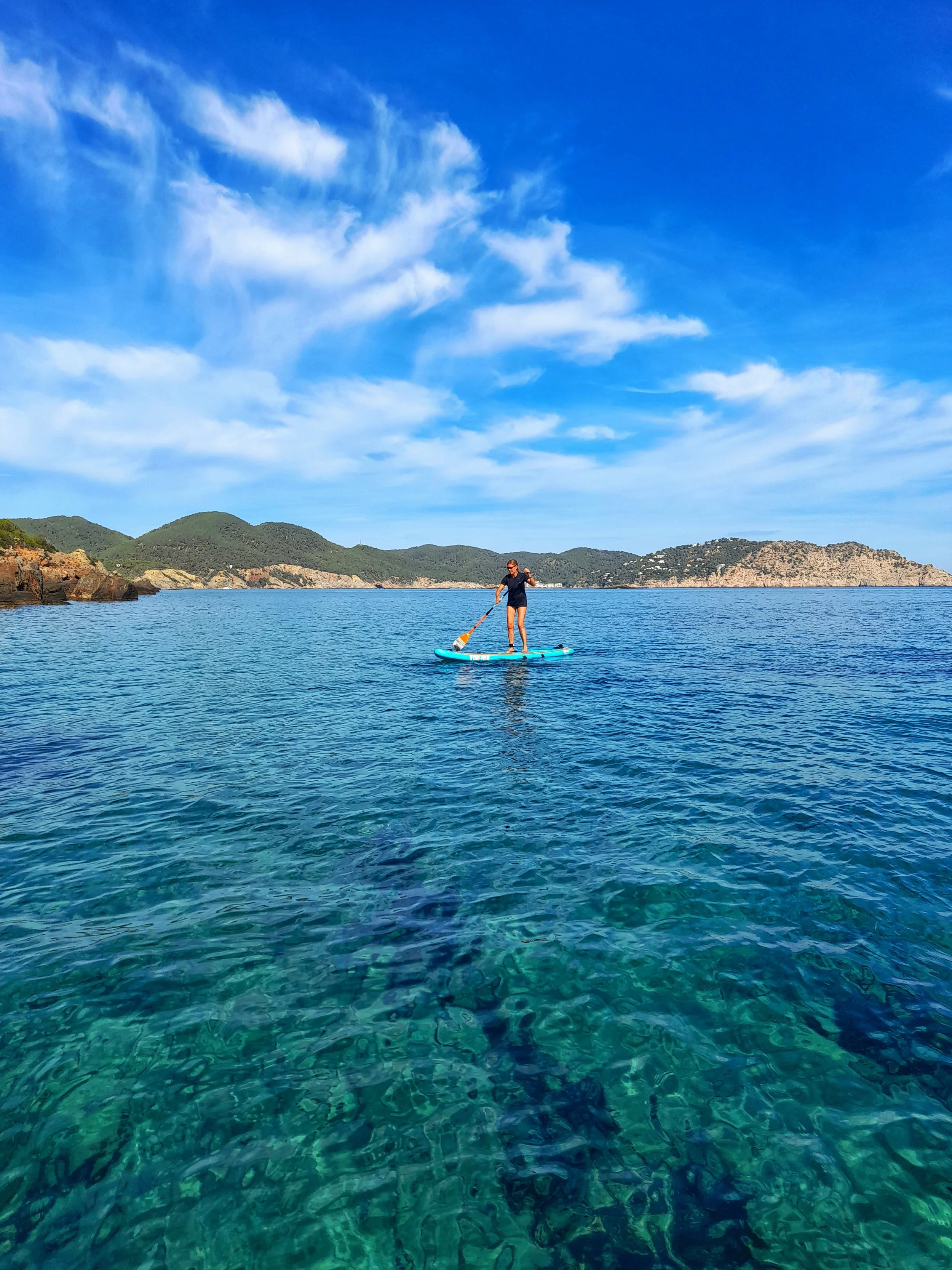 practicing Yoga & Pilates, glide across turquoise waters on the paddleboard, challenge your balance with SUP Yoga & SUP Pilates and explore Ibiza’s breathtaking natural beauty on unforgettable hikes, all guided one-to-one by your own expert instructor and local insider.